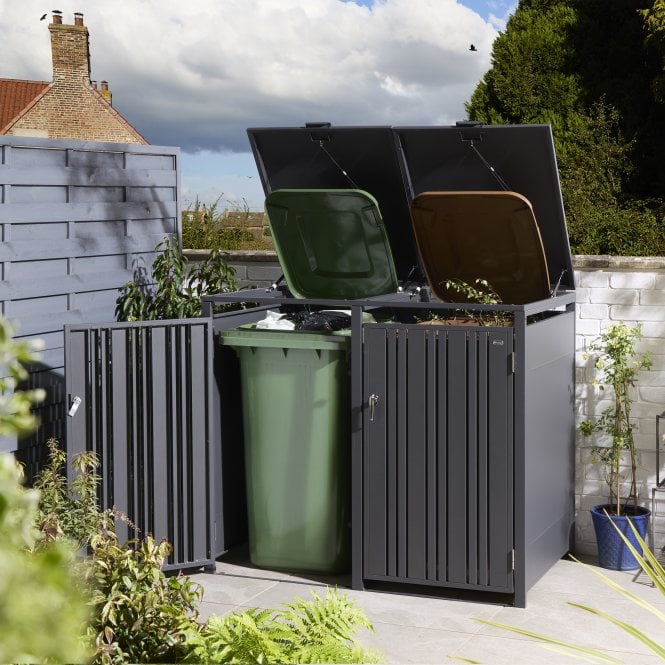 The Rowlinson Wimbledon Double Metal Bin Store is a stylish and contemporary storage space to stow away your unsightly yet essential wheelie bins.